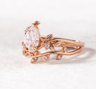 Nature Inspired Pear Cut Moissanite Leaf Engagement Ring Set 2pcs